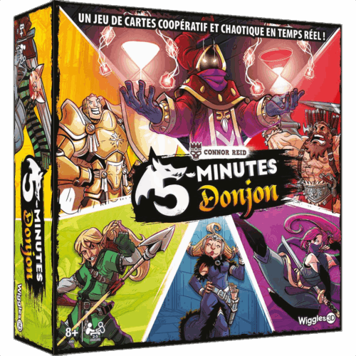 5 Minutes Donjon est un jeu de cartes chaotique, coopératif et en temps réel dans lequel les joueurs n'ont que cinq minutes pour s'échapper du donjon aléatoire. La communication et le travail d'équipe sont essentiels à la survie, car il n'y a pas le temps pour former un plan bien réfléchi - et aucun moyen d'anticiper les dangers qui vous attendent.