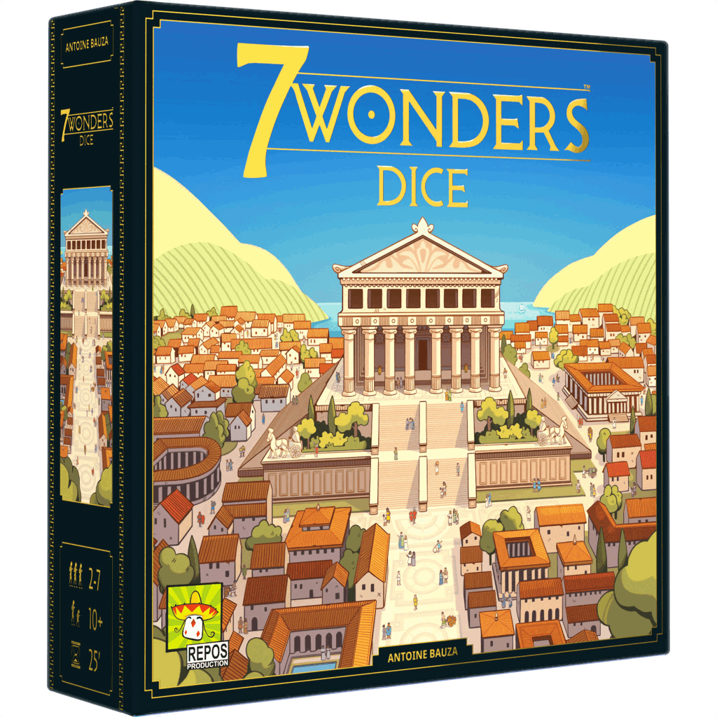 Dans 7 Wonders Dice, chaque joueur fait prospérer sa cité antique en lançant des dés et en construisant bâtiments et Merveille.