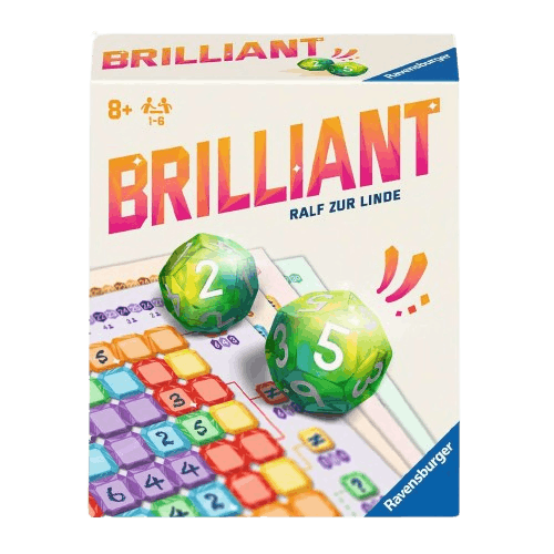 « Récoltez les brillants avant que les autres ne s'en emparent !" Le but de BRILLIANT est de compléter les cases de votre feuille avec des chiffres le plus rapidement possible ! Lancez les dés et inscrivez l'un des chiffres lancés à côté d'un chiffre déjà rempli. La feuille de jeu est composée de cases colorées, chaque couleur a ses propres règles pour le placement des chiffres. Soyez rapide, rusé et attentif à la stratégie pour être le premier à remplir sa feuille !