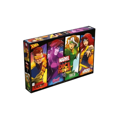 Dice Throne Marvel est un jeu de combat rapide qui permet aux joueurs d'incarner leurs héros Marvel préférés dans des combats en duels, des batailles en équipe et des combats en mode chacun pour soi! Basée sur le jeu à succès Dice Throne, cette boîte Dice Throne Marvel: Cyclope, Gambit, Malicia, Jean Grey permet aux joueurs d'incarner Cyclope, Gambit, Malicia, Jean Grey, chacun avec son propre set de dés, son plateau de jeu et son deck de cartes unique.
