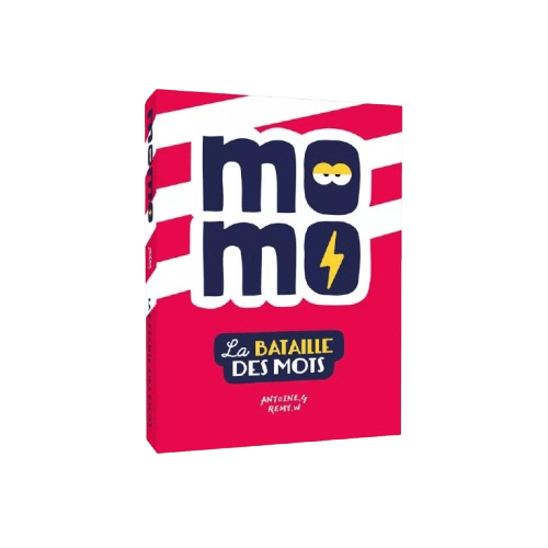 Des cartes spéciales comme "Flash !", "Inversion" ou l'accent anglais viennent pimenter la partie et rendre chaque manche unique. Facile à transporter, rapide à expliquer et toujours imprévisible, Momo La Bataille des Mots est un jeu de cartes fun, rapide, et ultra-rejouable avec ses variantes et modes de jeu disponibles !