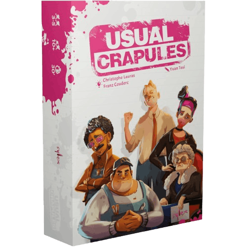 Usual Crapules vous embarque dans une ambiance de procès survolté entre anciens braqueurs. Après un casse raté, les joueurs se retrouvent devant le juge : celui qui écopera de la peine la plus courte pourra aller déterrer le magot avant les autres.